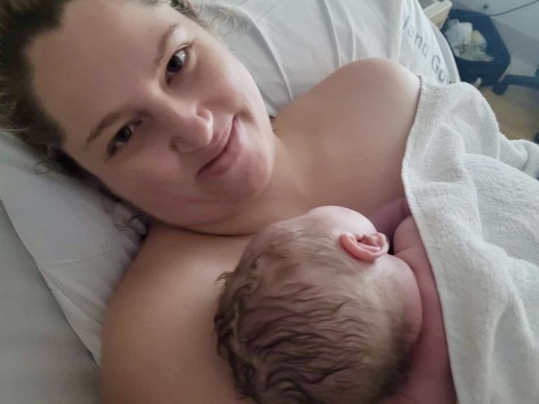 "I had the same instinct as I did with Alvie and needed to lay on my side with my leg up to birth our beautiful chunky monkey. We did it all with no pain relief and just all our hypnobirthing tools from last time with you."